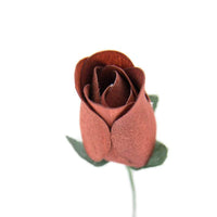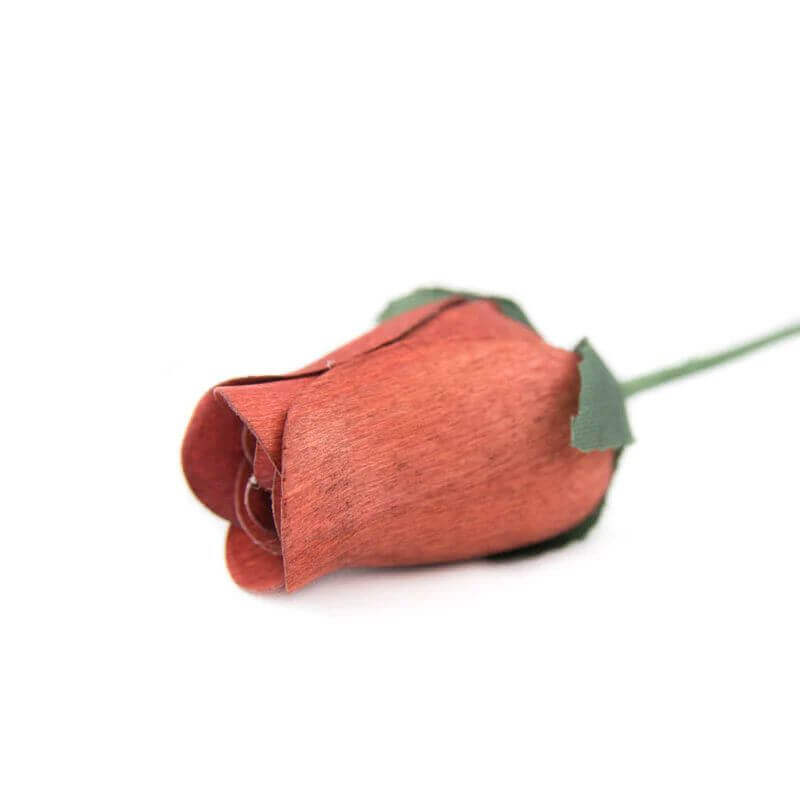 Our Wooden Closed Rose Bud in Chestnut. Chestnut, a deep reddish-brown color, symbolizes richness, warmth, and earthiness. It can convey a sense of elegance, stability, and natural beauty, while also representing simplicity and honesty.